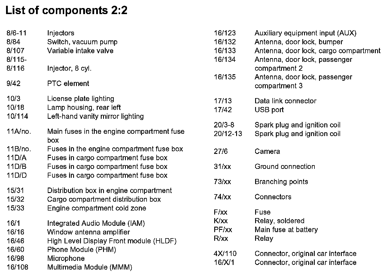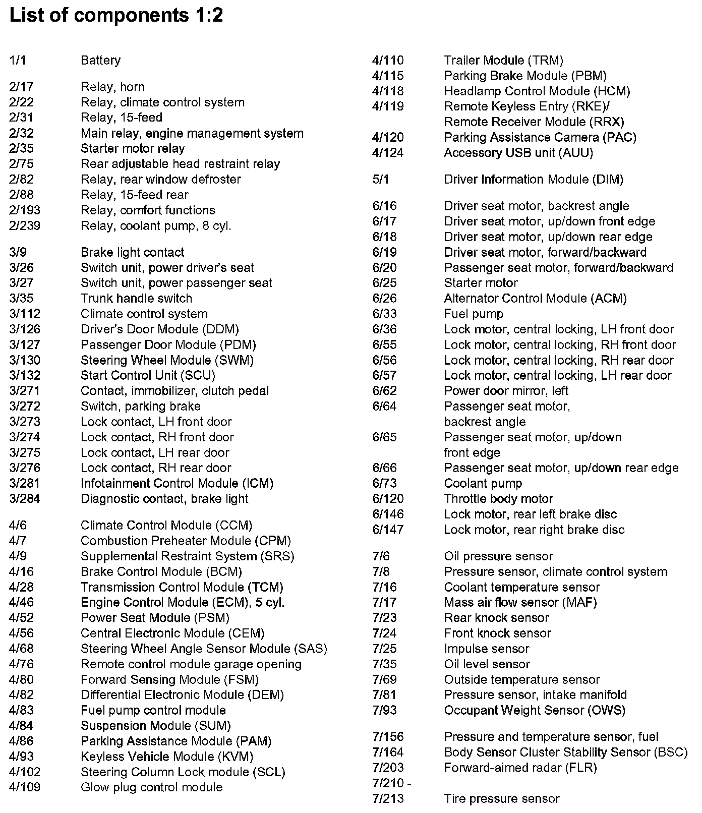 List of Components By Component Number