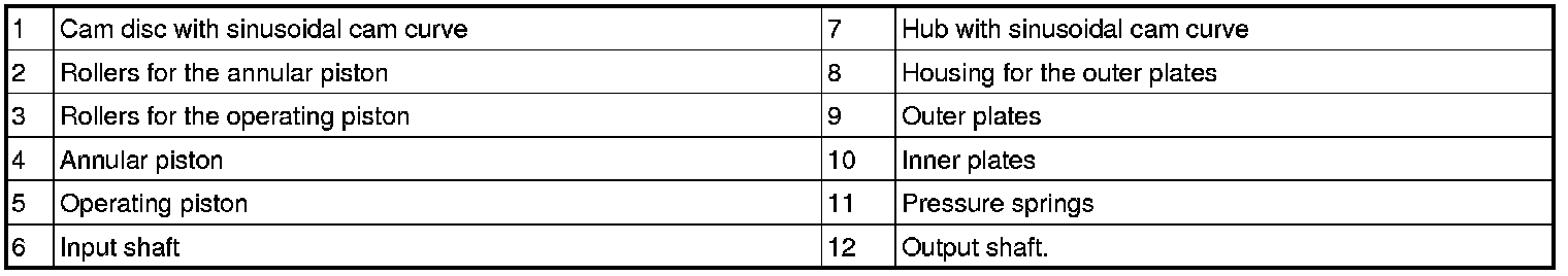 The sinusoidal cam disc with its sinusoidal curve rotates at the same speed as the propeller shaft. The annular piston rollers act on the cam disc's cam curve and press the annular pistons in and out. This creates an oil flow. The oil flow is controlled by the control valve/axial solenoid to create an oil pressure. The oil pressure affects the operating pistons that are applied against the multi-plate clutch pack.
