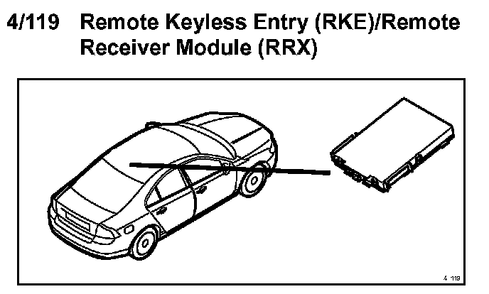 4/119 Remote Keyless Entry (RKE)/Remote Receiver Module (RRX):