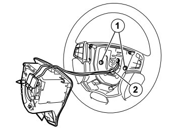 - Remove the three screws (1) and pull out the horn ring slightly so that the connector (2) can be unplugged.
