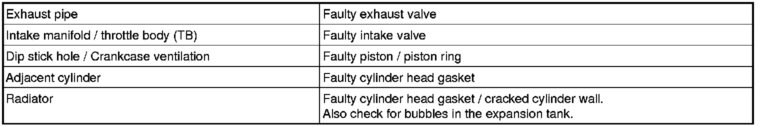 Using this method, the amount of leakage at the engine cylinders is measured and it is possible to locate the source of any leaks.