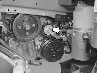 - the auxiliaries belt. Turn the belt tensioner up clockwise and install the belt. Use: 999 7109 Wrench 999 7109 Wrench.
