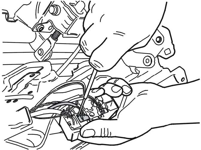 Bend the catch for the connector to one side. Press out the connector. Remove the connector.