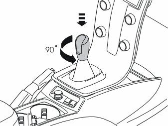 - Detach the gear selector lever knob by first pressing it down to the stop, and then turning it anticlockwise 90°.