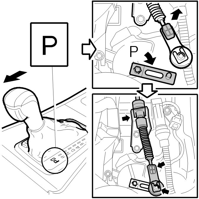 Install the cable in the bracket and on the lever on the transmission. Fold the locking down.