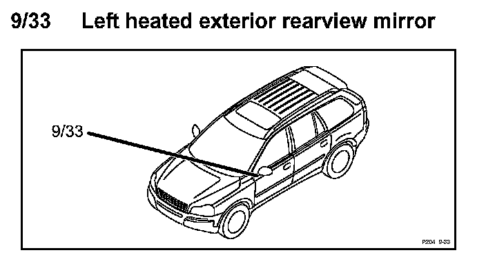 9/33 Left Heated Exterior Rearview Mirror:
