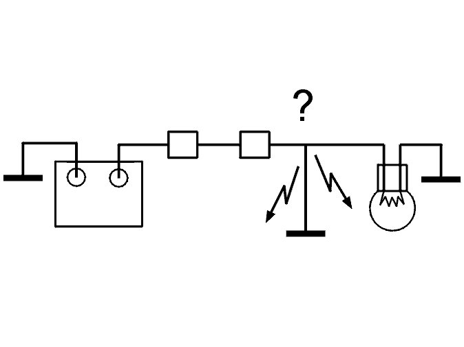 A short-circuit between a live cable and ground is often indicated by the loss of a function or a fuse blowing when a current is passed through the cable.