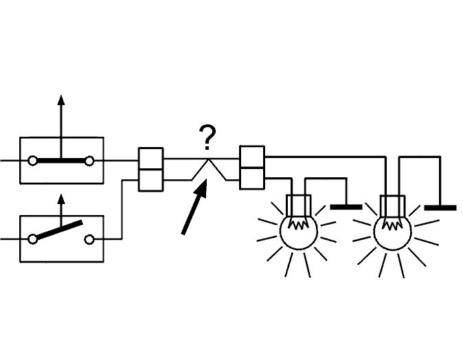 A short-circuit between a cable and supply voltage is often indicated by the loss of a function or a fuse blowing when a current is passed through the cable.