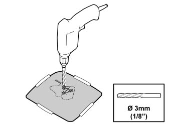 - Predrill the holes according to the template using a -3 mm (1/8") drill bit.
