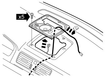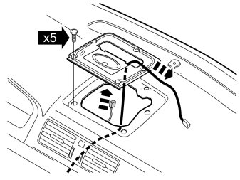 - On vehicles without a center loudspeaker there is a console holding the loudspeaker grille. On these vehicles the console remains in place and the cable is routed through the hole.