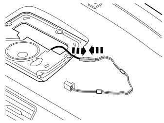 - Connect the connector to the loudspeaker. Route the cable to the cradle through the large hole in the speaker console.