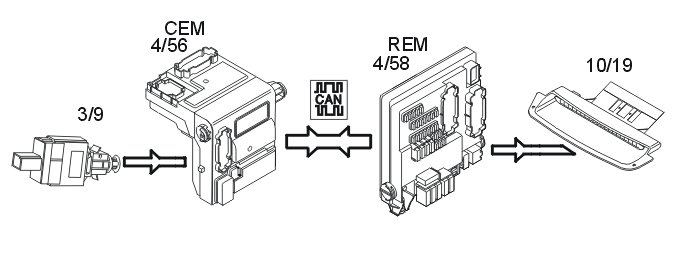 The central electronic module (CEM) also transmits a CAN signal to the driver information module (DIM) (5/1) to light the indicator lamp for high beam.