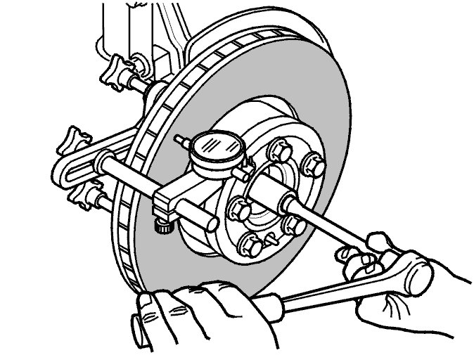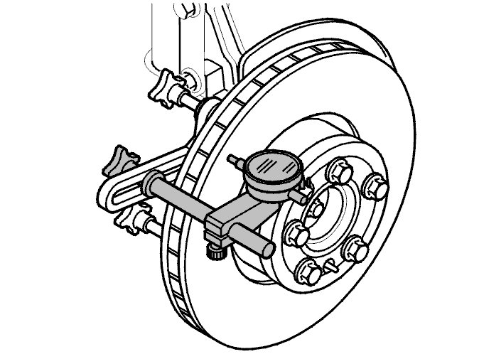 Put the test gauge point against the brake disc as illustrated.