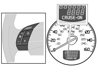 - That the speed locks when + or - are used and that "CRUISE ON" then appears in the display on the combined instrument panel.