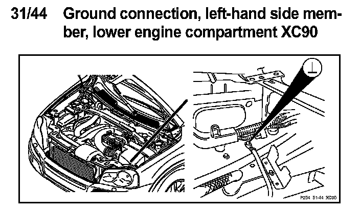31/44 Ground Connection, Left-Hand Side Member, Lower Engine Compartment: