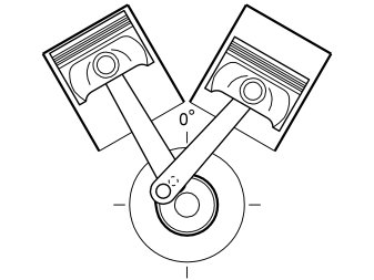 When the crankshaft has rotated 90 degrees the right hand piston is at the top and the left hand piston is halfway between the upper and lower turning points.