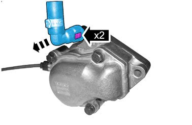 Loosen hose thermostat housing-expansion tank from the thermostat housing by pressing in the locks, then press in the connection against the thermostat housing, then pull out the connection.