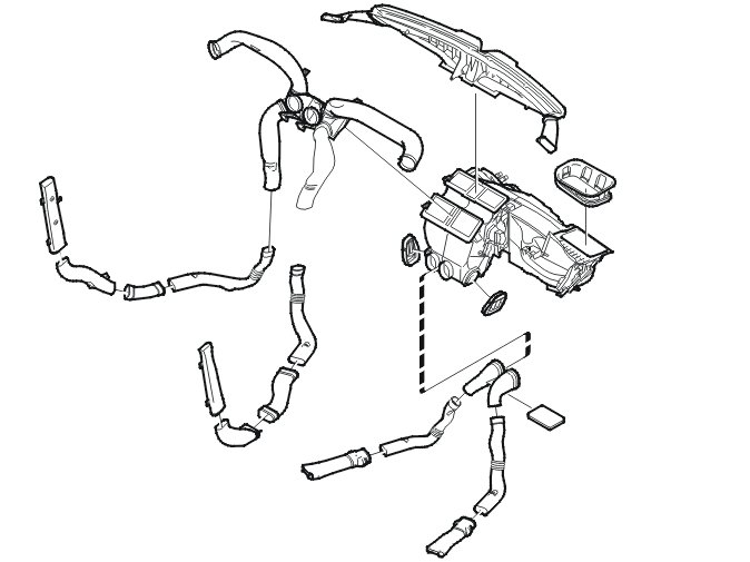 By changing the direction of the dampers in the climate control system, air is directed through the various air ducts out to the passenger compartment.