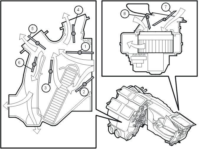 - A recirculation damper for controlling the flow of the air in the passenger compartment back into the climate control system.