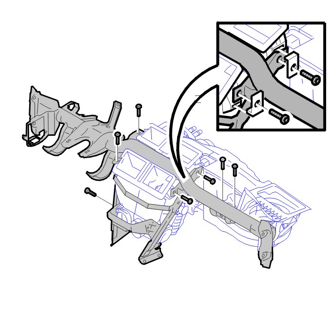 - the 4 screws securing the climate control unit at the member on the left and right-hand sides