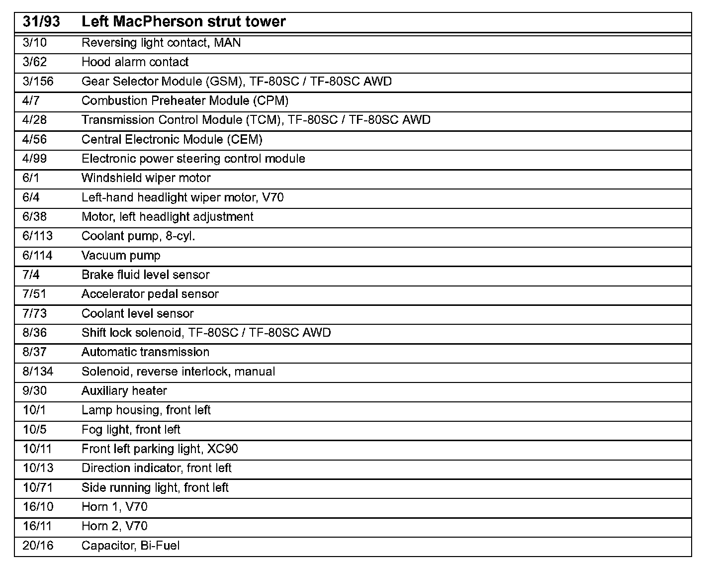 31/93 Ground Connection, Left MacPherson Strut Tower: