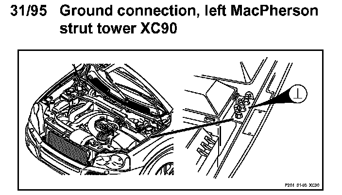 31/95 Ground Connection, Left MacPherson Strut Tower:
