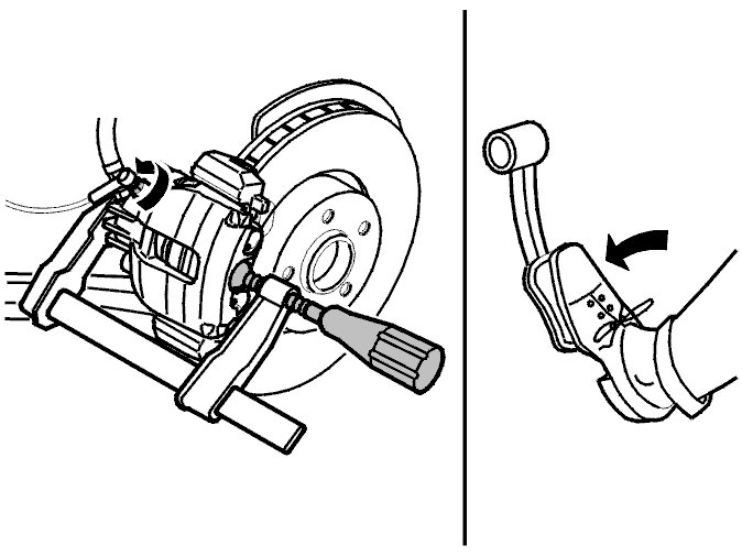 Open the bleed nipple. Collect the brake fluid in a container. Press the brake caliper piston to the bottom of the caliper.