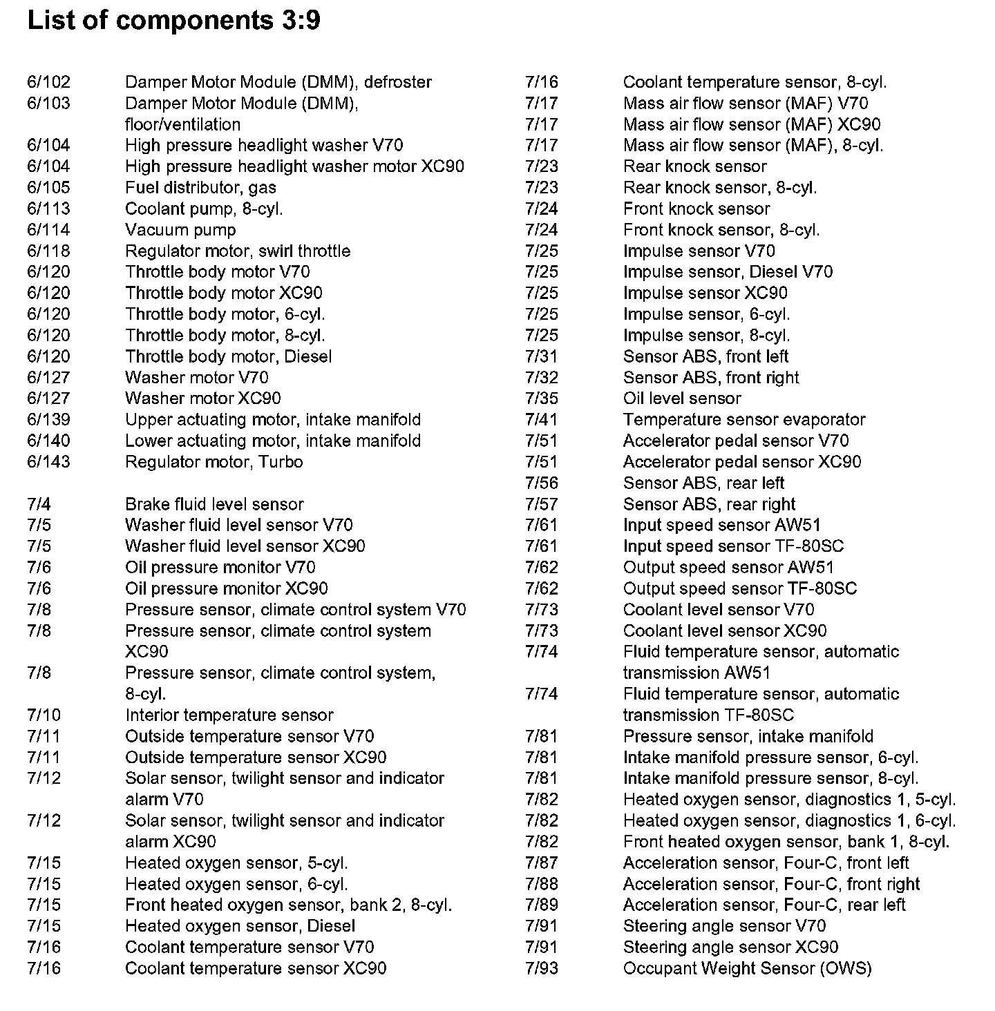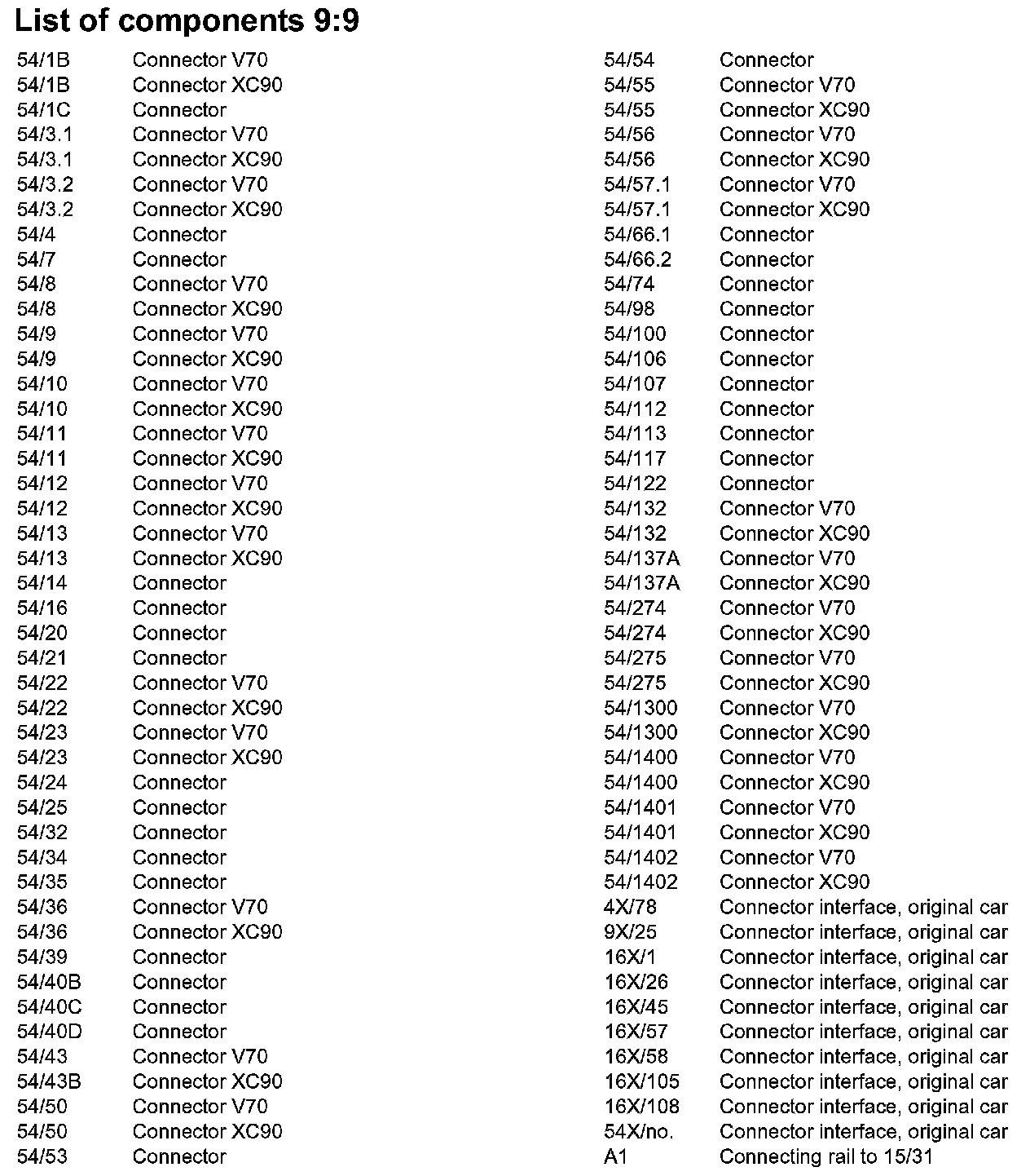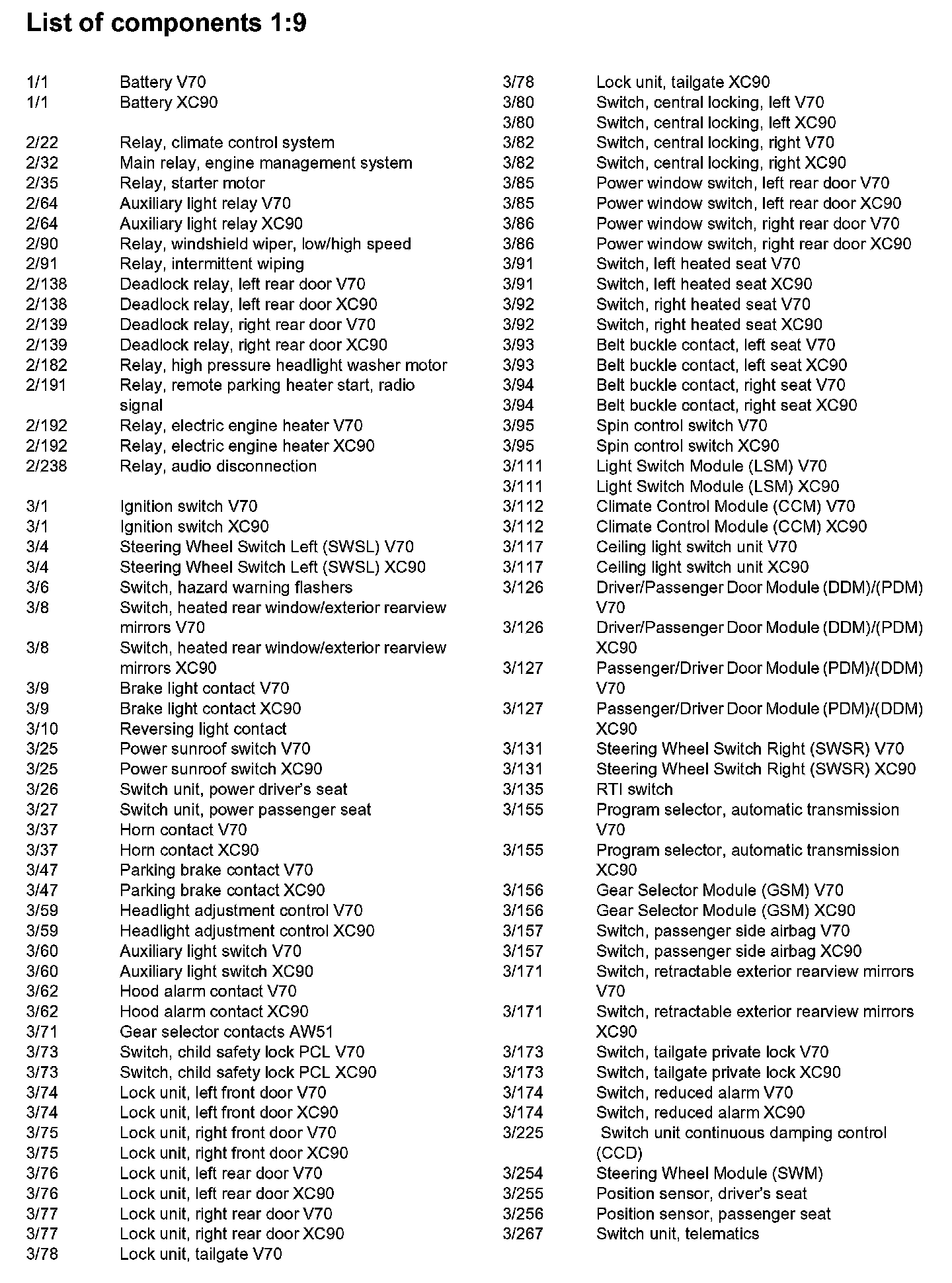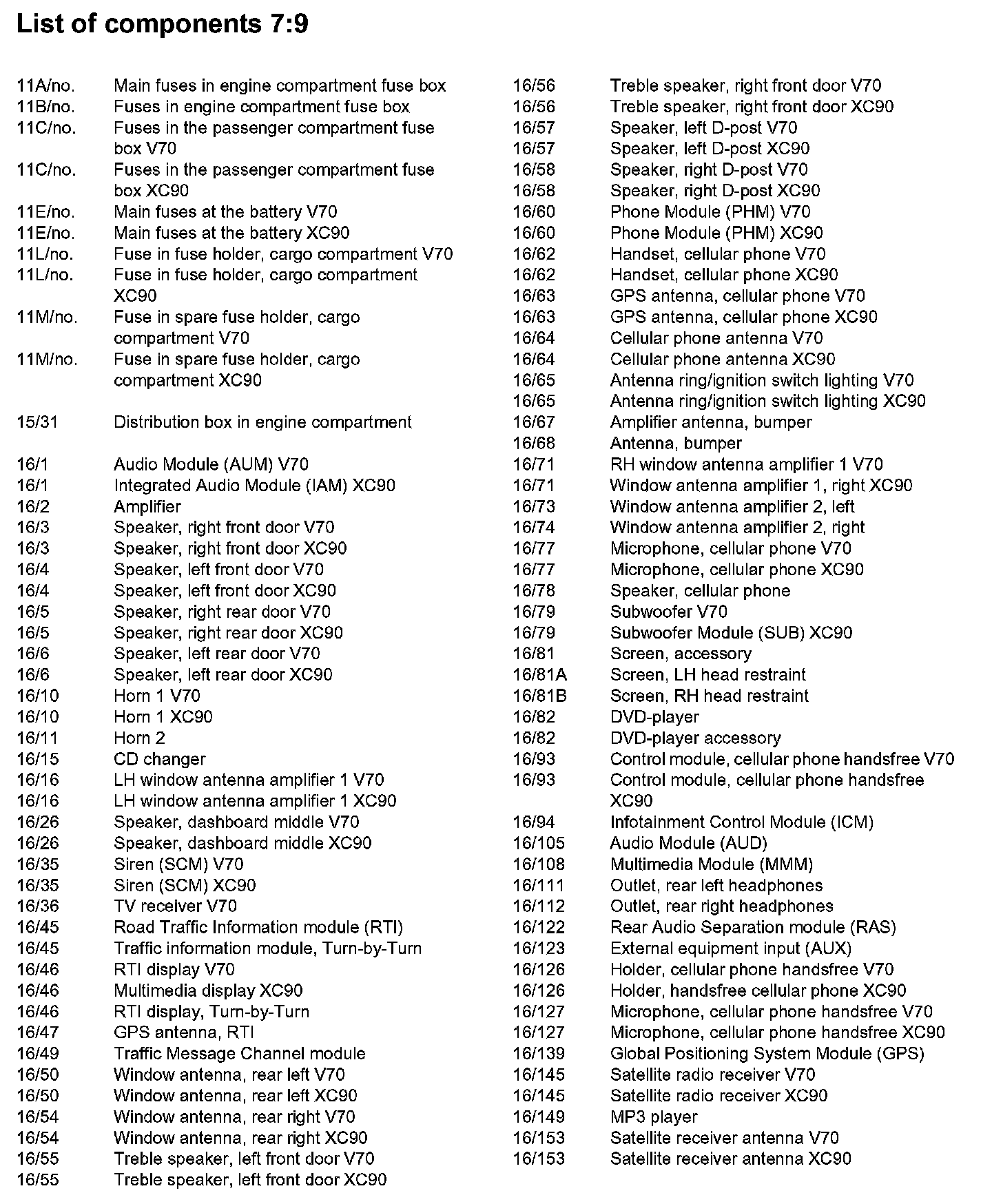 List of Components By Component Number