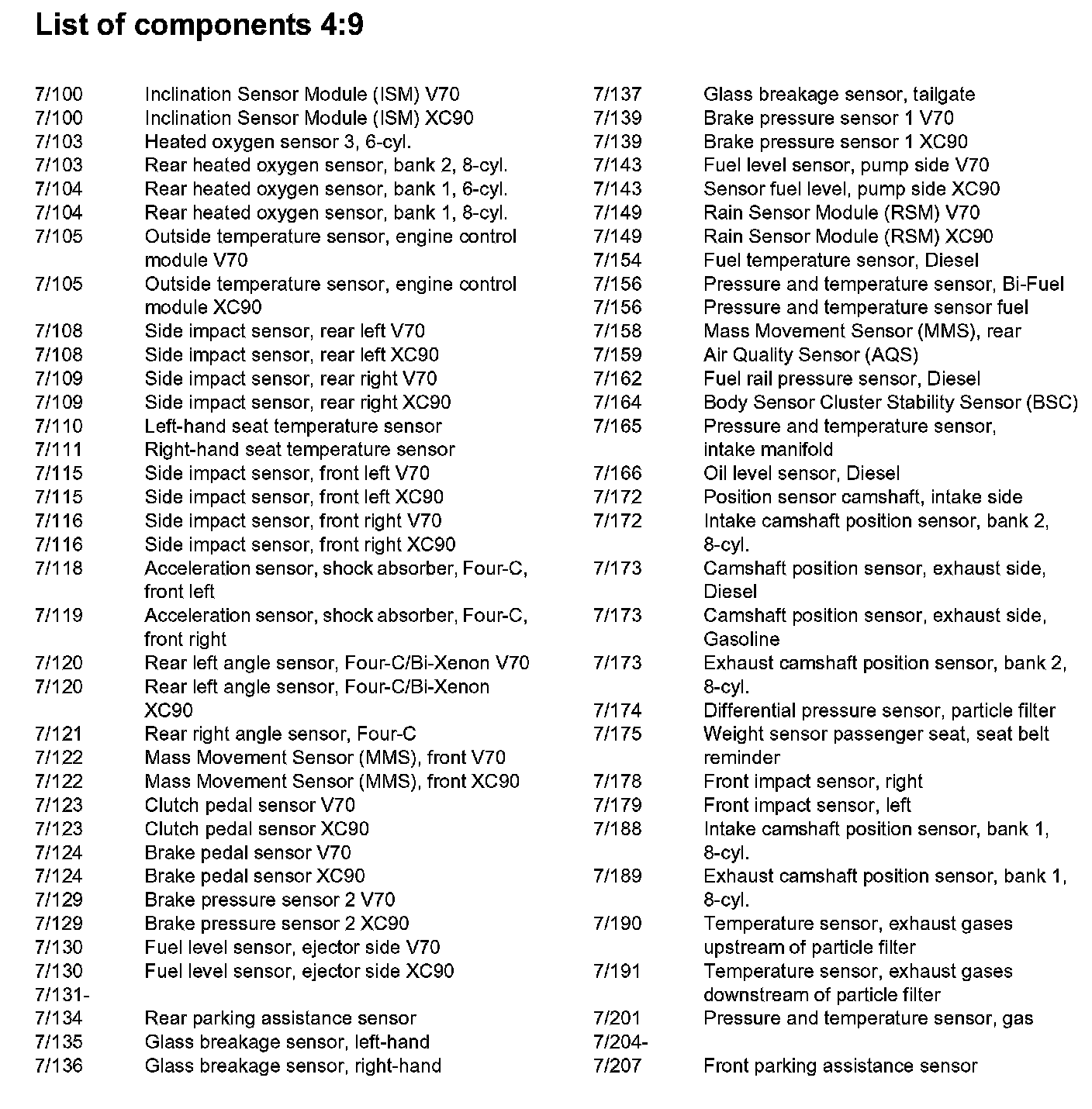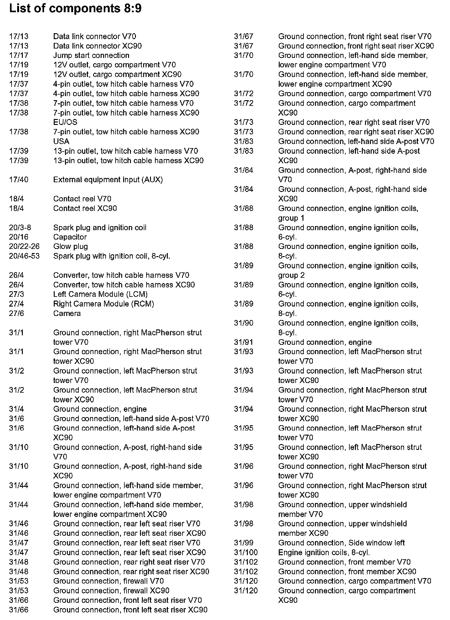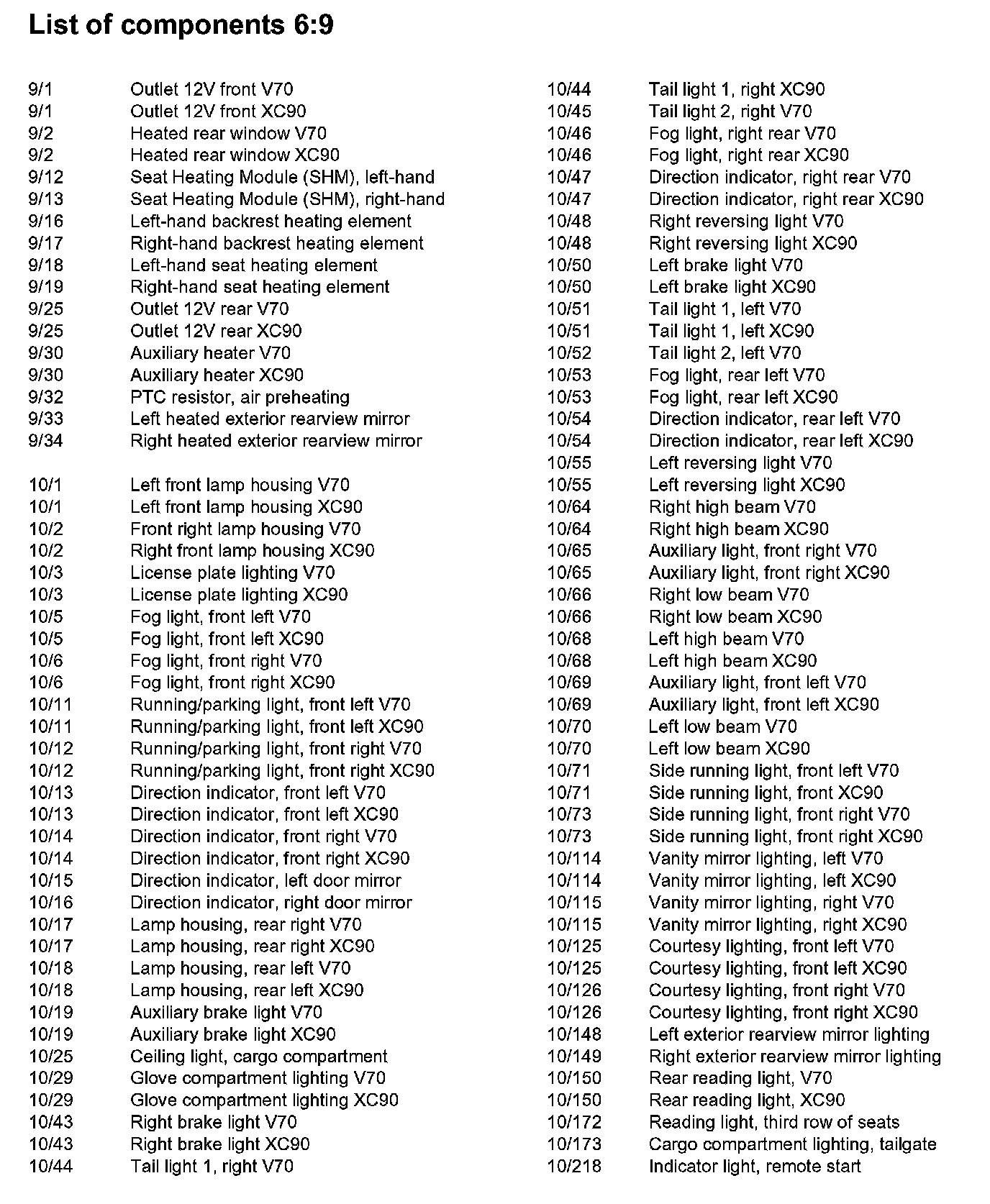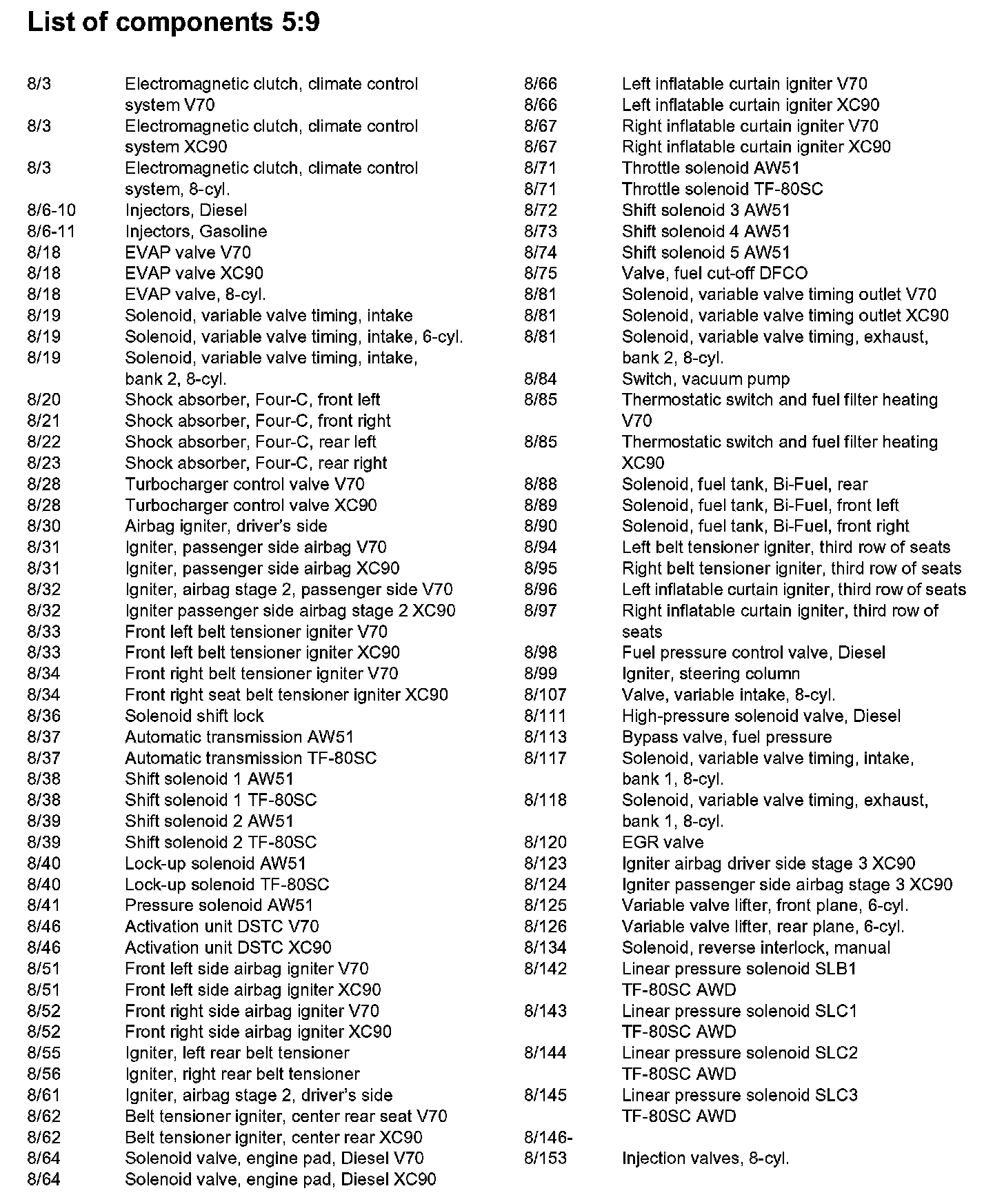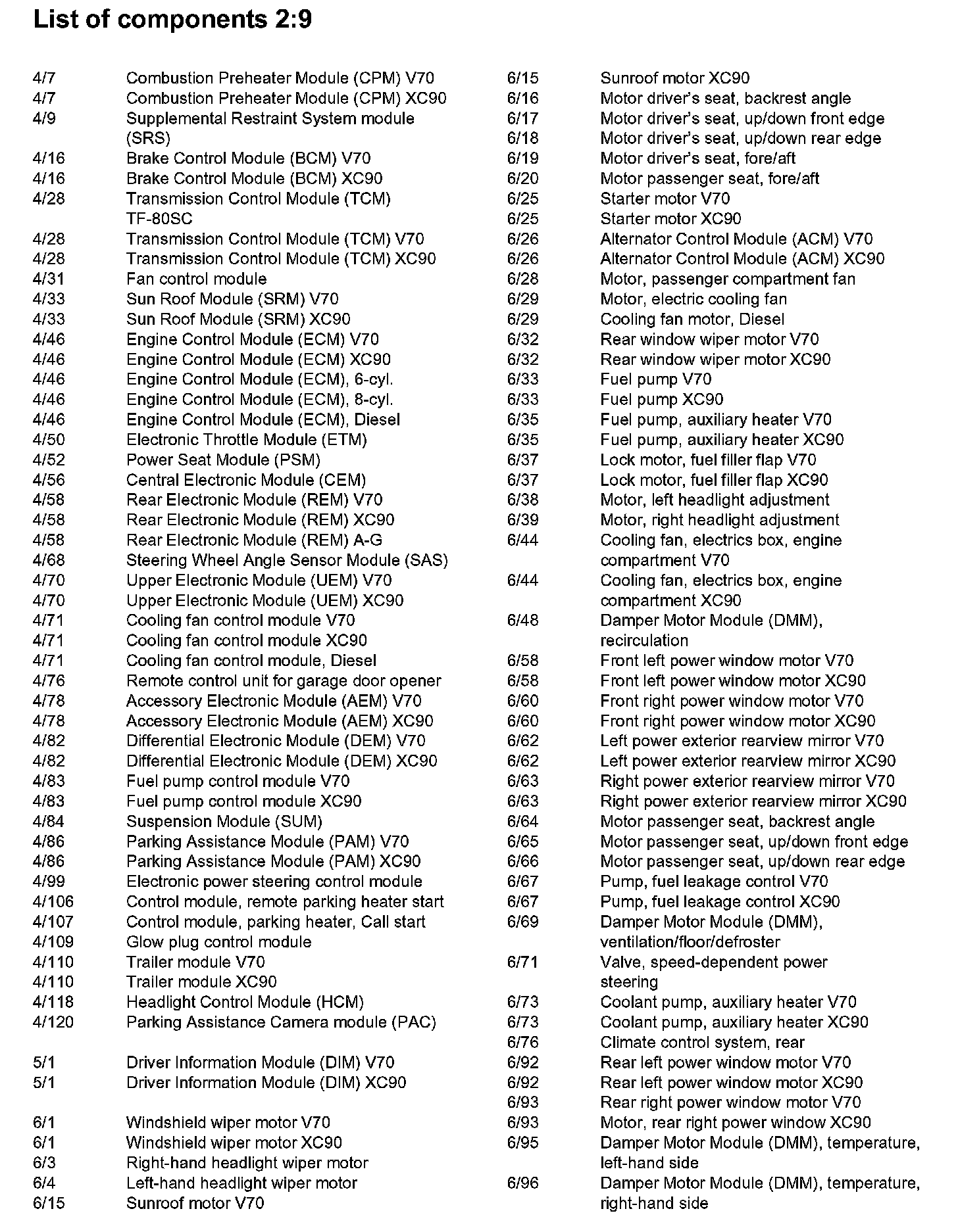 List of Components By Component Number
