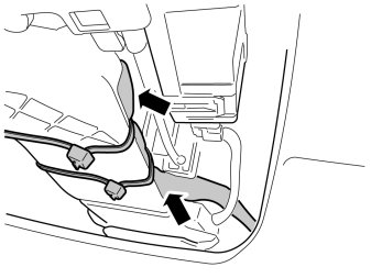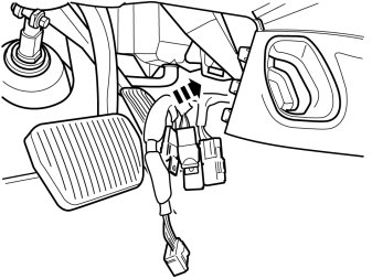 - Connect the connector from the cable harness to the existing connector. Place the wiring and connectors in their original position inside the glove box.