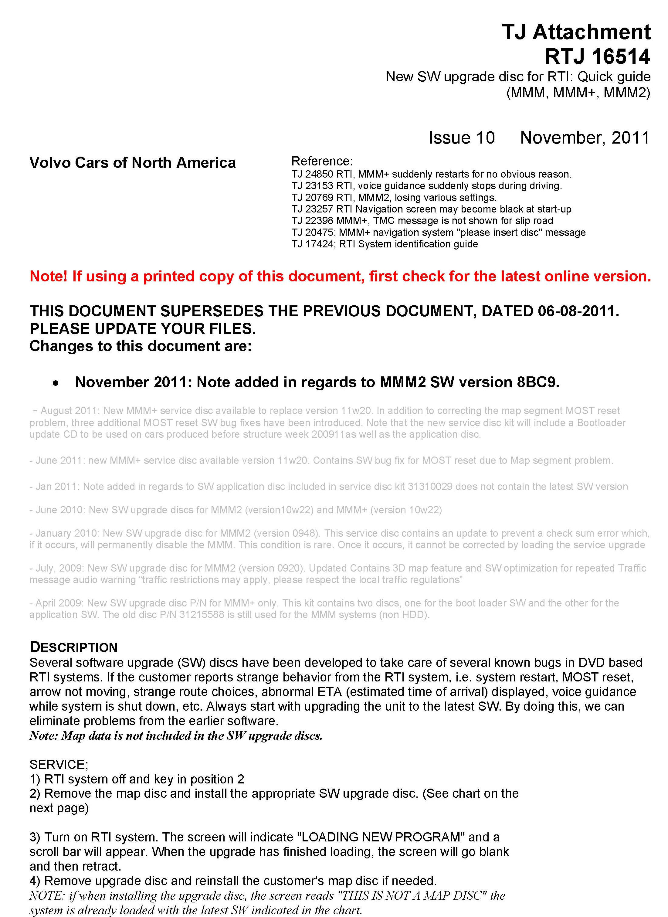 ^ June 2011 new MMM+ service disc available version 11w20. Contains SW bug fix for MOST reset due to Map segment problem.