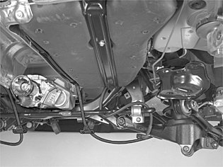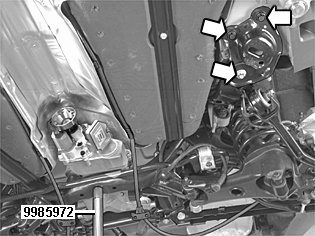 Remove the screws from the front mounting in the body for the rear axle member, on both sides.