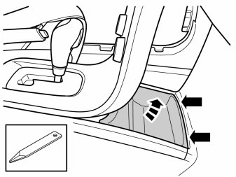 - Carefully pry off the panel inside the centre console. Use a plastic weatherstrip tool. The panel is secured by two clips on each of the short sides.