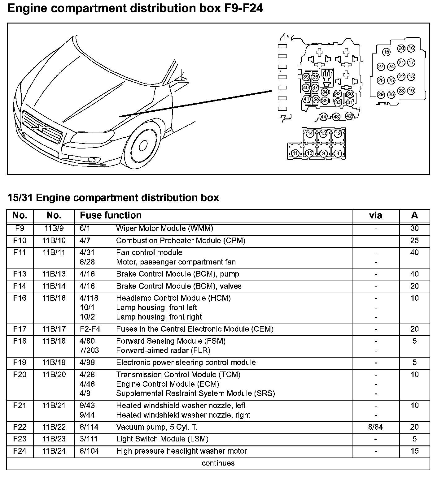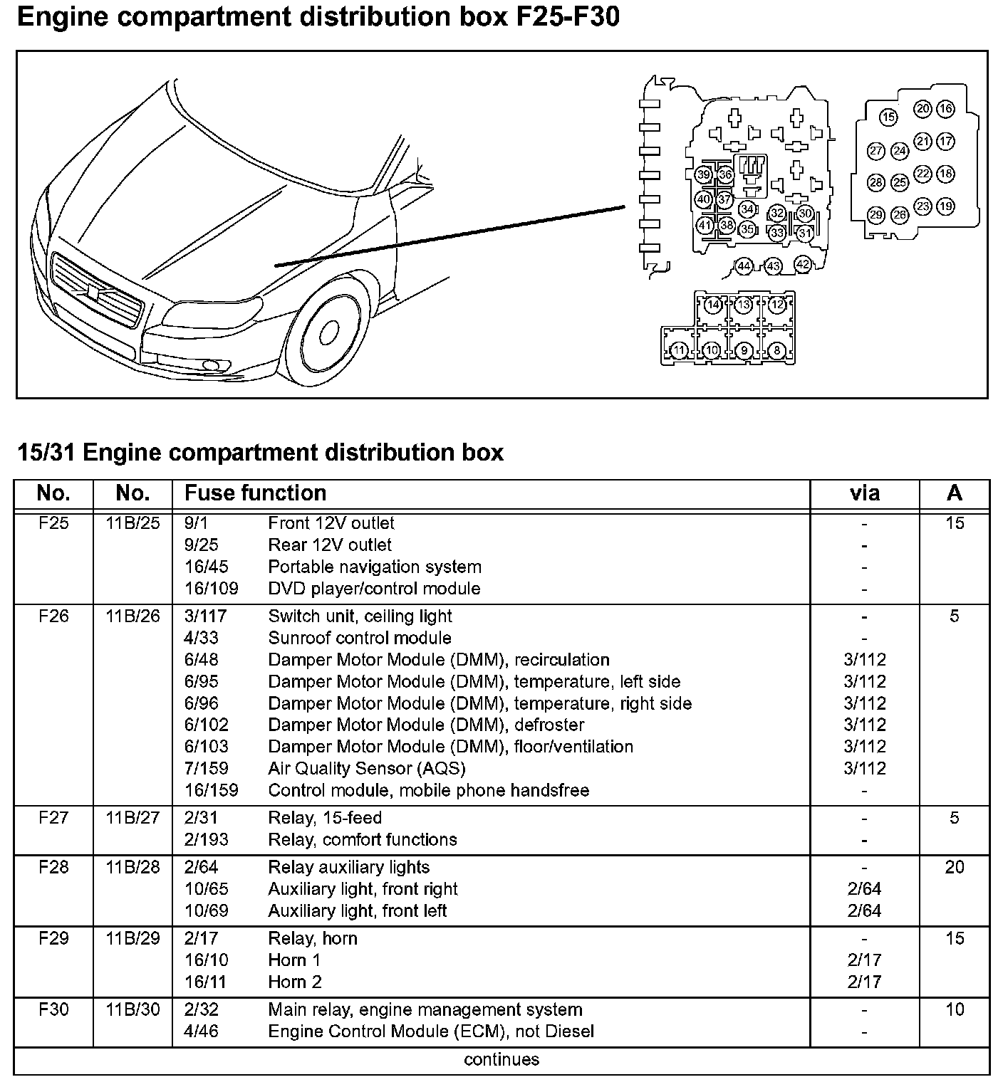 Engine Compartment Distribution Box F25-F30: