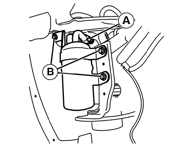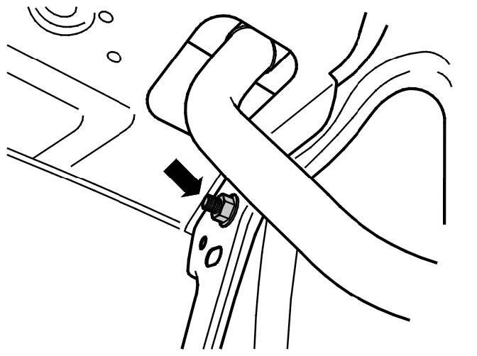 Remove the nut under the front fender liner on the righthand side. See the illustration.