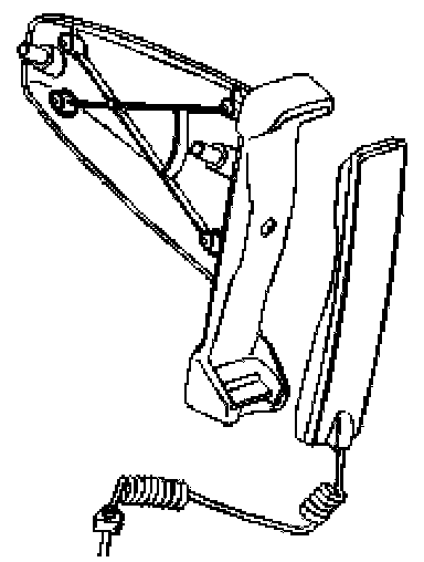 The phone module (PHM) determines whether to connect the call using hands free or the handset, depending on the signal from the cradle. When the handset is in the cradle, all voice calls are hands free. The handset is activated when it is removed from the cradle. The cradle signal to the phone module (PHM) is controlled by a magnetic switch in the handset. The switch is closed by a magnet in the cradle. When the handset is in the cradle, the cradle signal to the phone module (PHM) is 0 V. When the handset is in use the signal is 5 V.