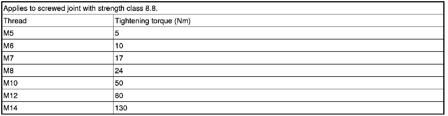 Note! Screws coated with a locking fluid or self locking nuts must always be replaced with new when reinstalled.