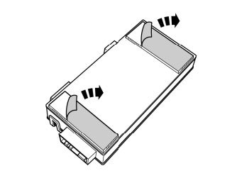 - Press in the catches on the cover of the upper module and remove it.