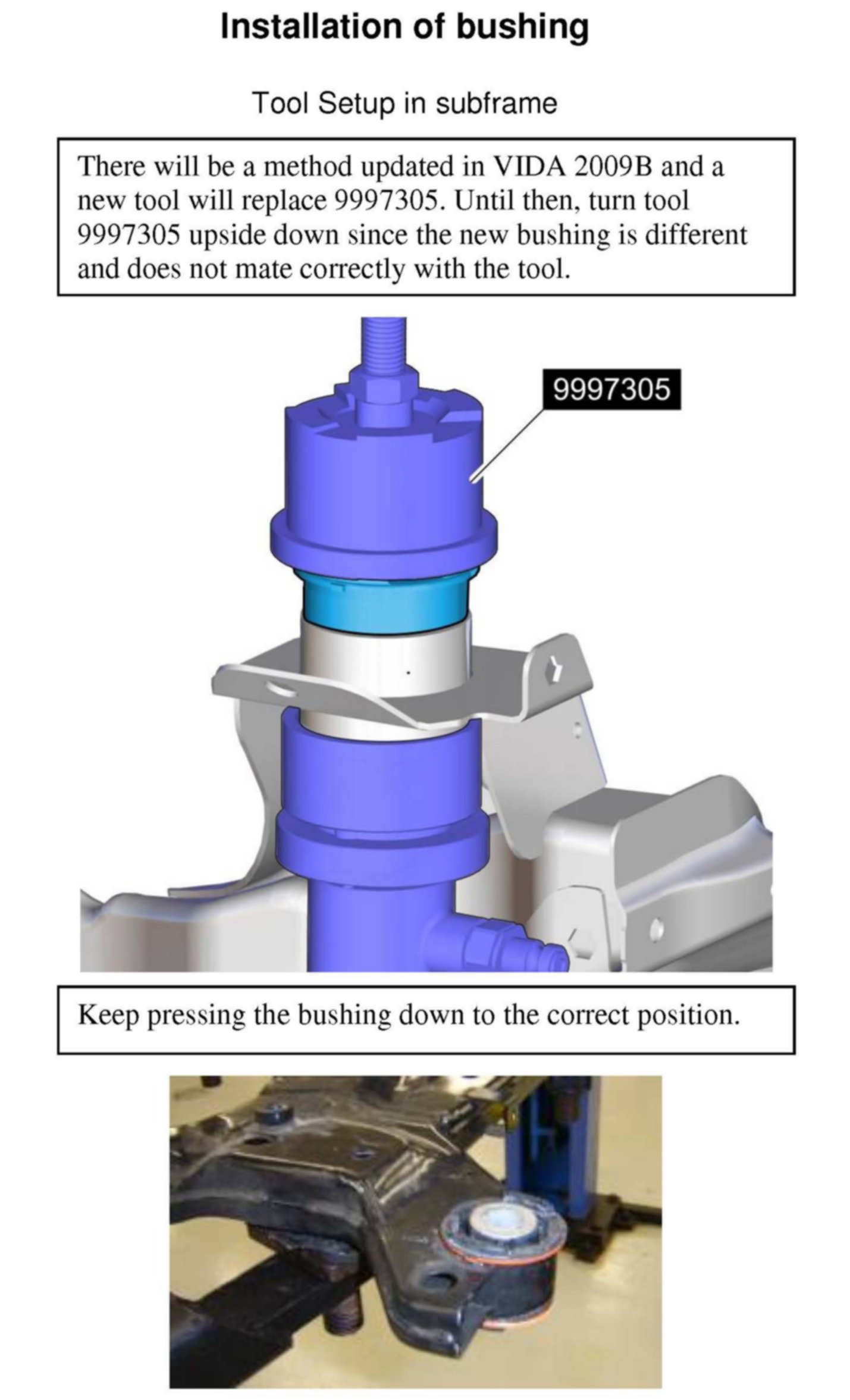 This document is a supplement to VIDA to better explain the process of removing and installing subframe bushings.