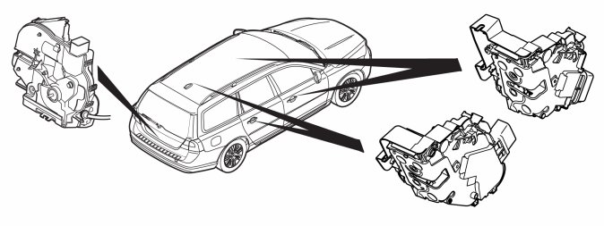The central locking system is a distributed system. Those parts which are included in the system are: