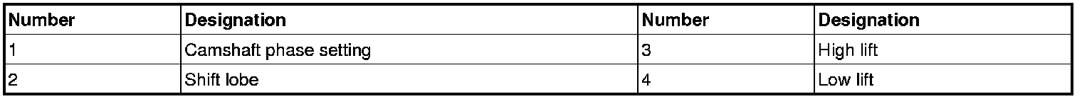 The inlet camshaft is provided with three cams for each valve, one centrally located with small lift height, 3.6 mm, and two equally sized outer cams with big lift height, 10.0 mm. With a small lift height at low load and at engine speeds up to approx. 3000 rpm, the primary benefit is lower fuel consumption.