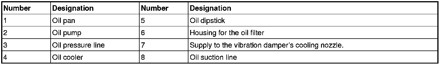 The oil suction line, which runs from the oil pan, is made of plastic. The oil pan is equipped with an oil level sensor.