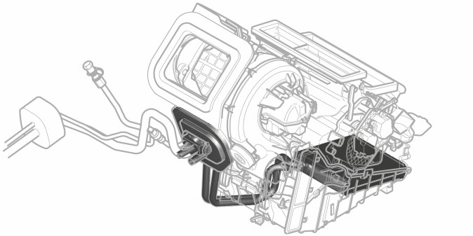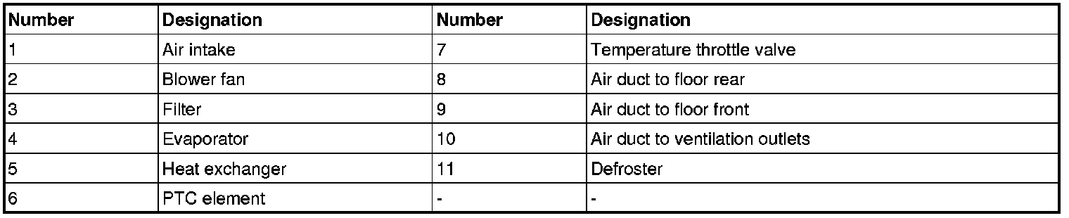 The PTC element is placed in the climate unit after the heat exchanger. It is accessible from the front.