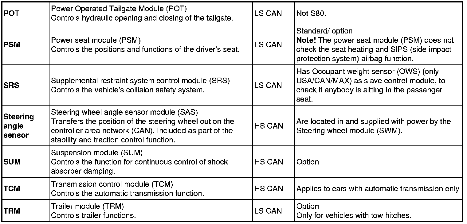 The number of control modules in the CAN varies depending on the level of equipment, the vehicle model and the structure week.