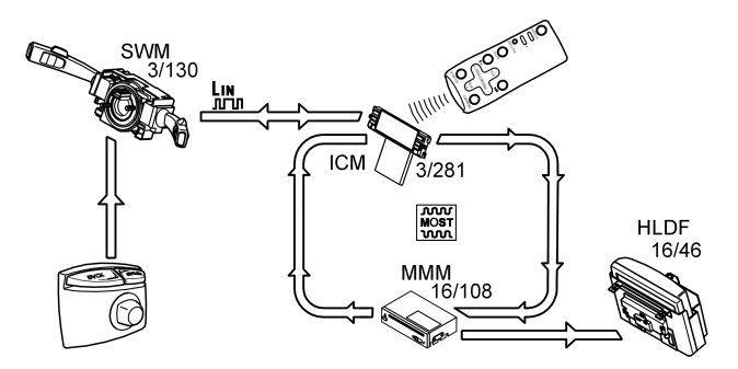 Information from these control modules is sent to the infotainment control module (ICM) (3/281), which then distributes the information to the multimedia module (MMM).
