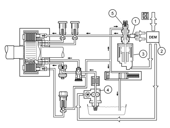 The pre-tensioning function is achieved by the electric feed pump starting as soon as the engine has started. During acceleration, when pulling off, or during other situations that means that the oil pressure's desired value is not achieved by the clutch's flow, the feed pump, together with the check and by-pass valve, builds up a pressure (1.0 MPa). This pressure affects the clutch driven plates and can therefore transfer greater torque to the rear axle. The pre-tensioning function is controlled by the software so that activation only occurs when necessary.