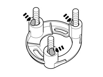 - Ensure that the holder's two screw turrets align between the small pins in the oblong holes in the spacer. A click should be heard when the spacer is securely in position.