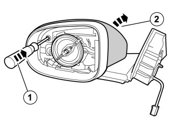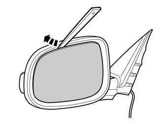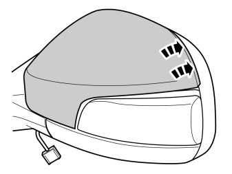 - Press the old cover into the mirror housing. Press all the way around so that all catches engage.