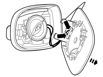 - Connect the connector and install the mirror motor in the mirror housing. Ensure that all catches engage.