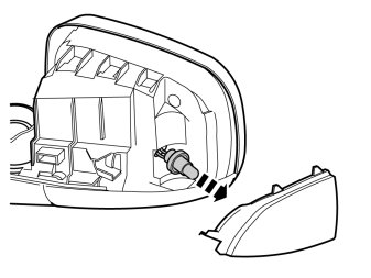- Carefully remove the indicator lamp from the mirror housing. It is secured by surrounding catches.